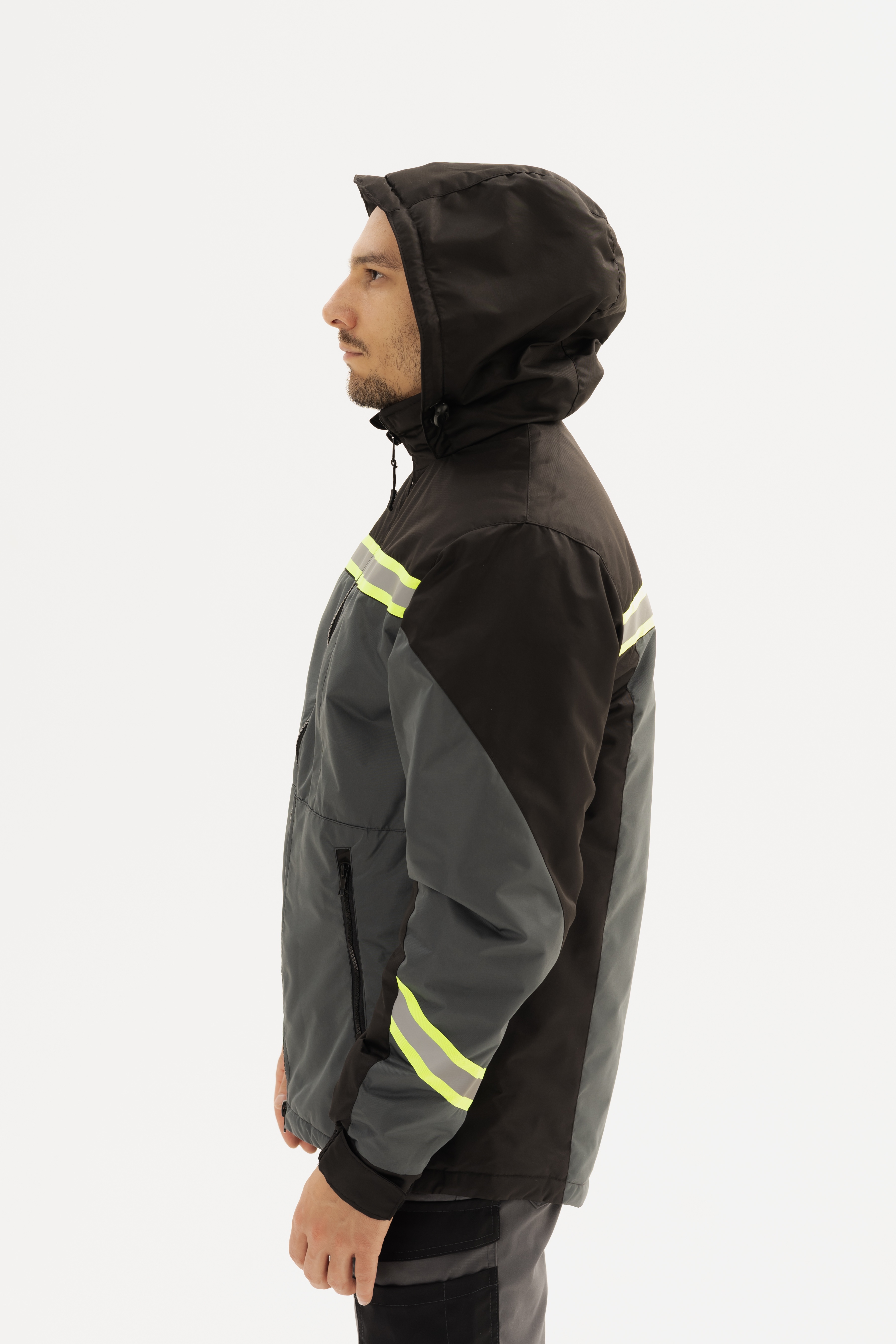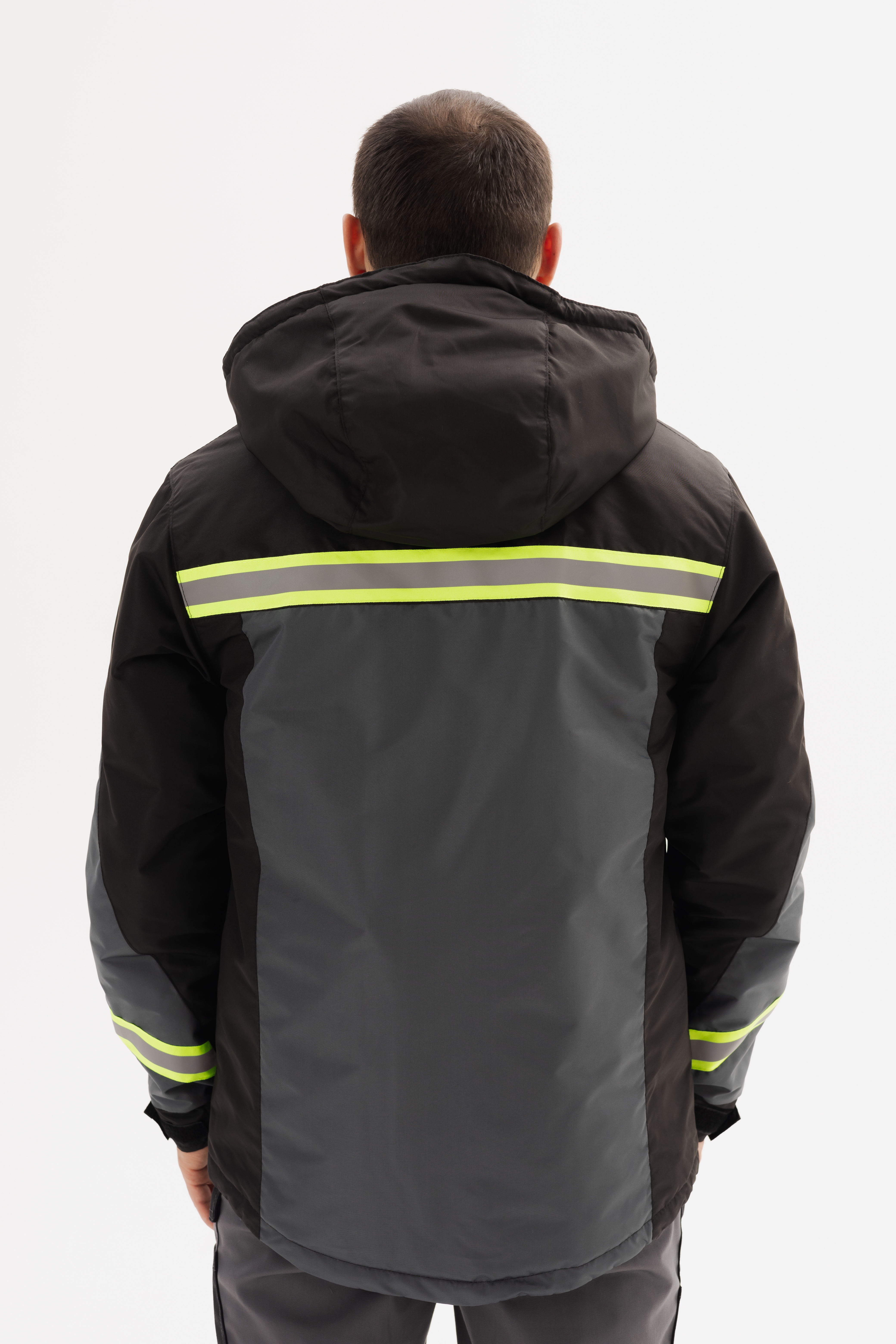 - по кокеткам, спинке и рукавам расположены светоотражающие полосы шириной 50 мм.
